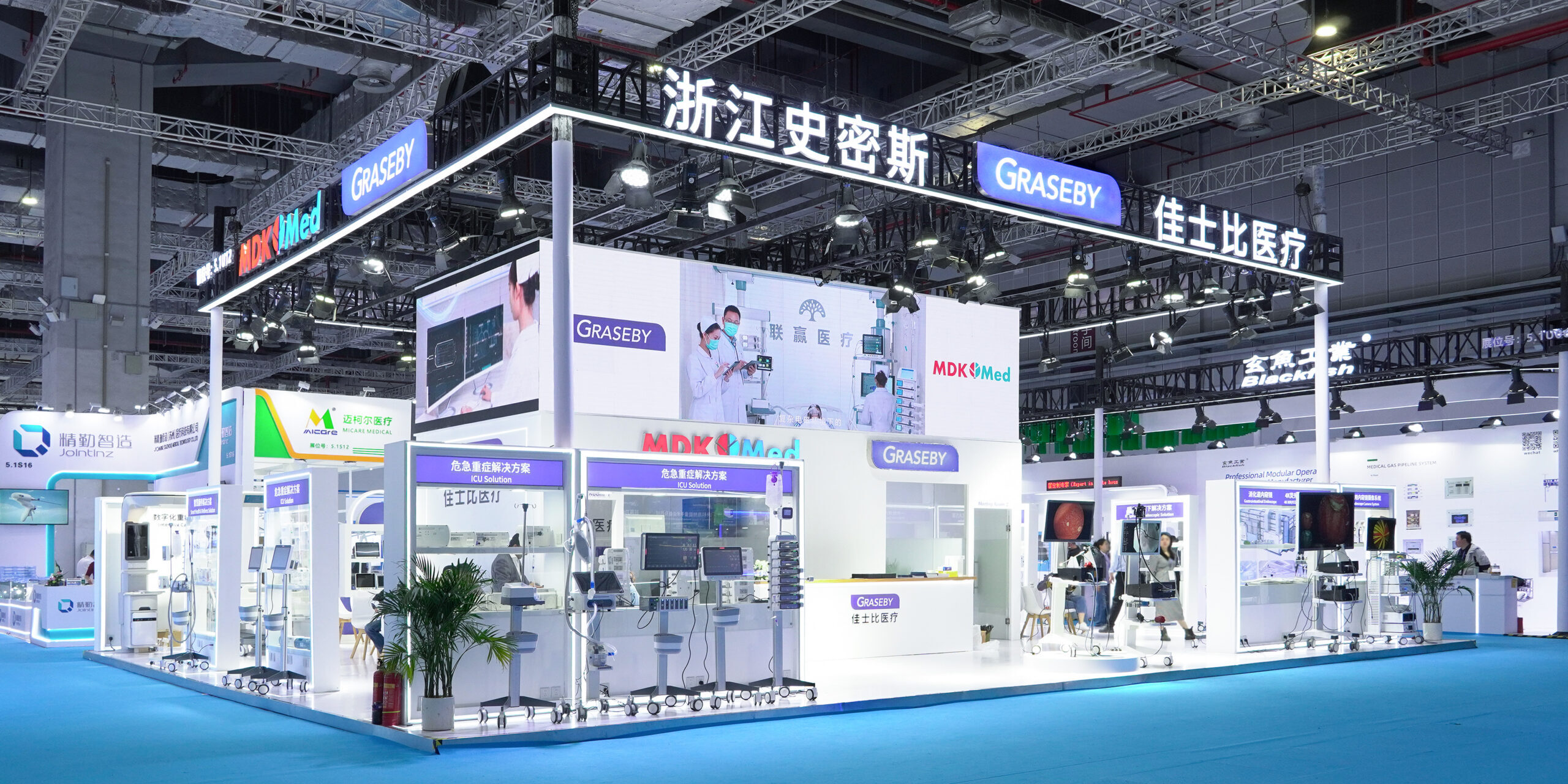 展会现场,联赢佳士比医疗对全院中央监护系统进行实时演示,该系统可兼容接入不同品牌的监护仪,实现全院监护设备的数据整合与集中管理,支持AI多模态综合分析预警,并能对接电子病历系统实现数据自动归档,助力医院构建智能一体化的监护管理体系。